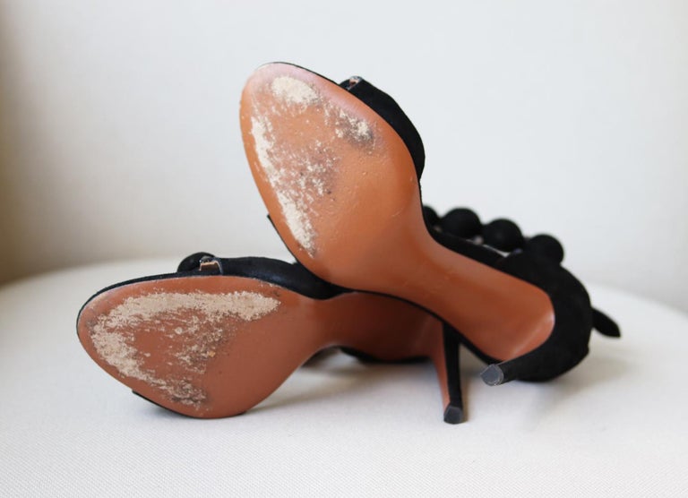 Alaïa Bombe TStrap Suede Sandals sakscom, offering the modern energy, style and personalized service of Saks Fifth Avenue stores, in an enhanced, easytonavigate shopping experience In order to use all of the site functionality on the Saks Fifth Avenue website, you must have JavaScript enabled on your browser. For Sale on 1stdibs White Studded Gladiator Sandals Size 7 They show signs of use, please see pictures Items Similar to ALAIA Sandals View More Alaia Black Plaform Cutout Snakeskin Heel 40 Alaia Red & Black Snake Skin Pointed Toe Pumps 41 Alaïa Tan Suede Wedge Sandals. Black suede sandals from Alaia The Bombe sandals have a 70mm heel, a open toe and signature button design in a new mule version, silvertone metal details True to size;.
