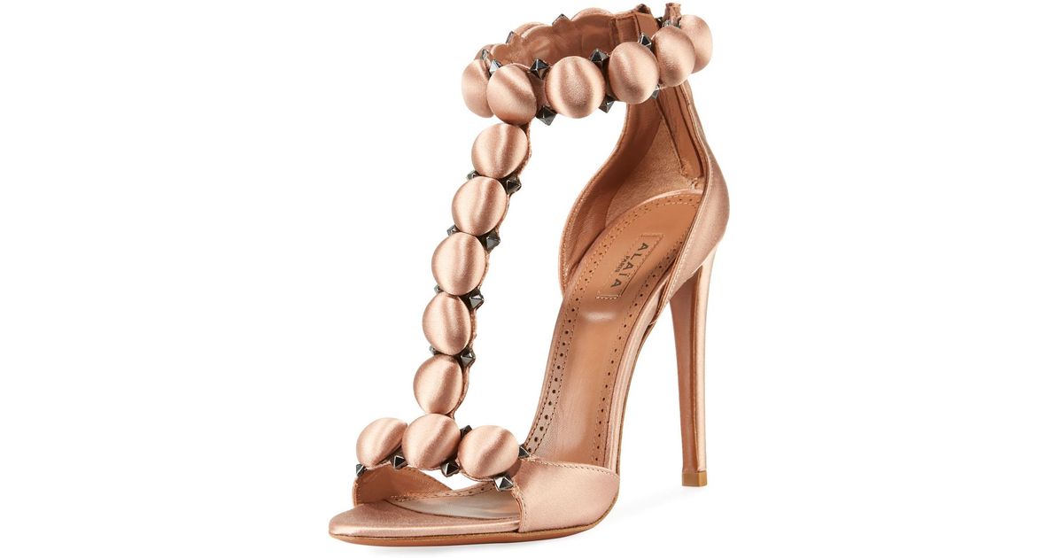 Alaia Satin Bombe Studded Sandals 135 In Nude Pink Lyst