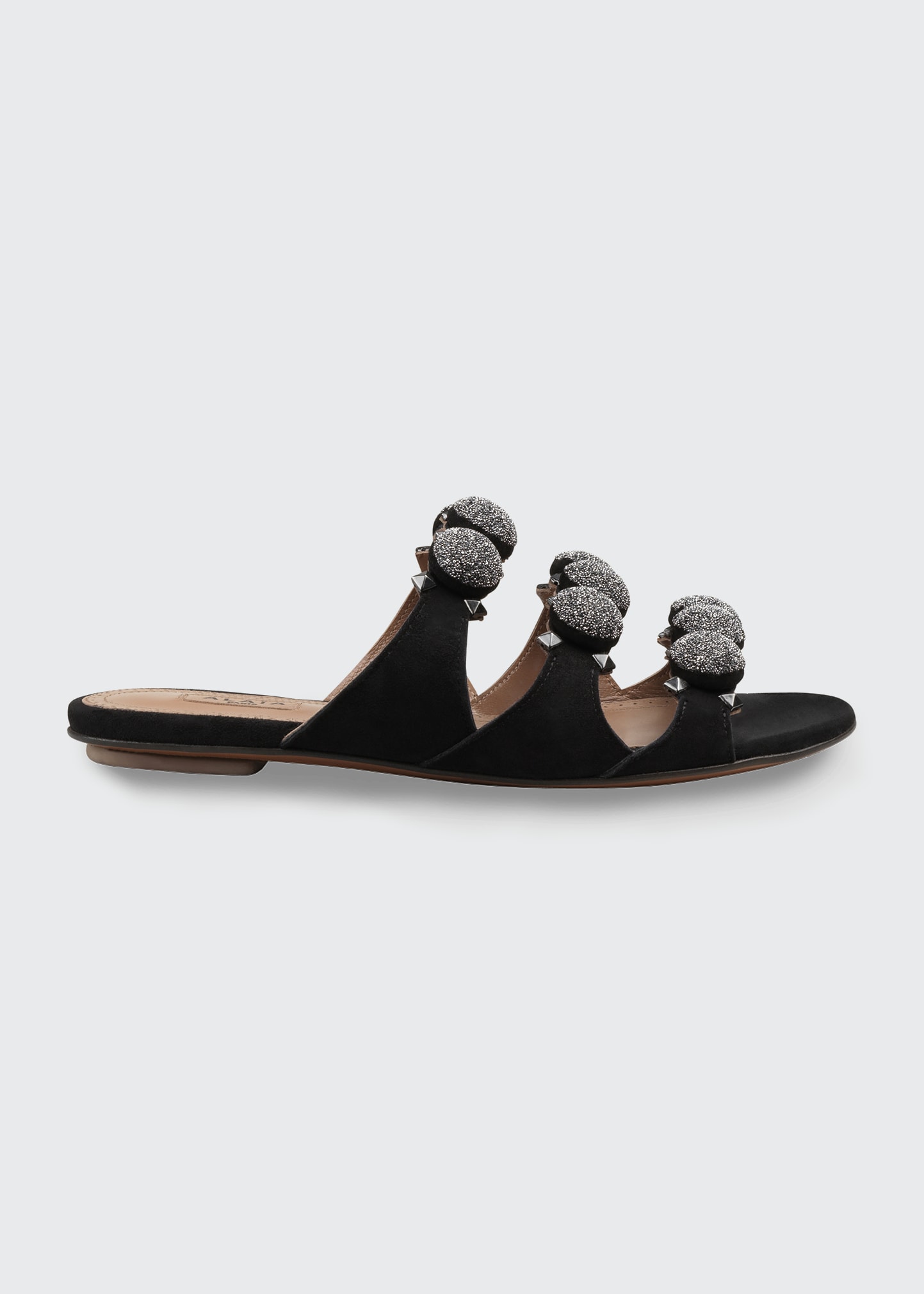 Alaia Womens Bombe Studded Suede Sandals Black Black Flat Shoes Renza Weddings