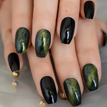 Holo Beauty Starry Sky Cat Eyes French Ballerina Coffin False Nails Uv Press On Fake Nails Tips Daily Office Finger Wear Decor Leather Bag