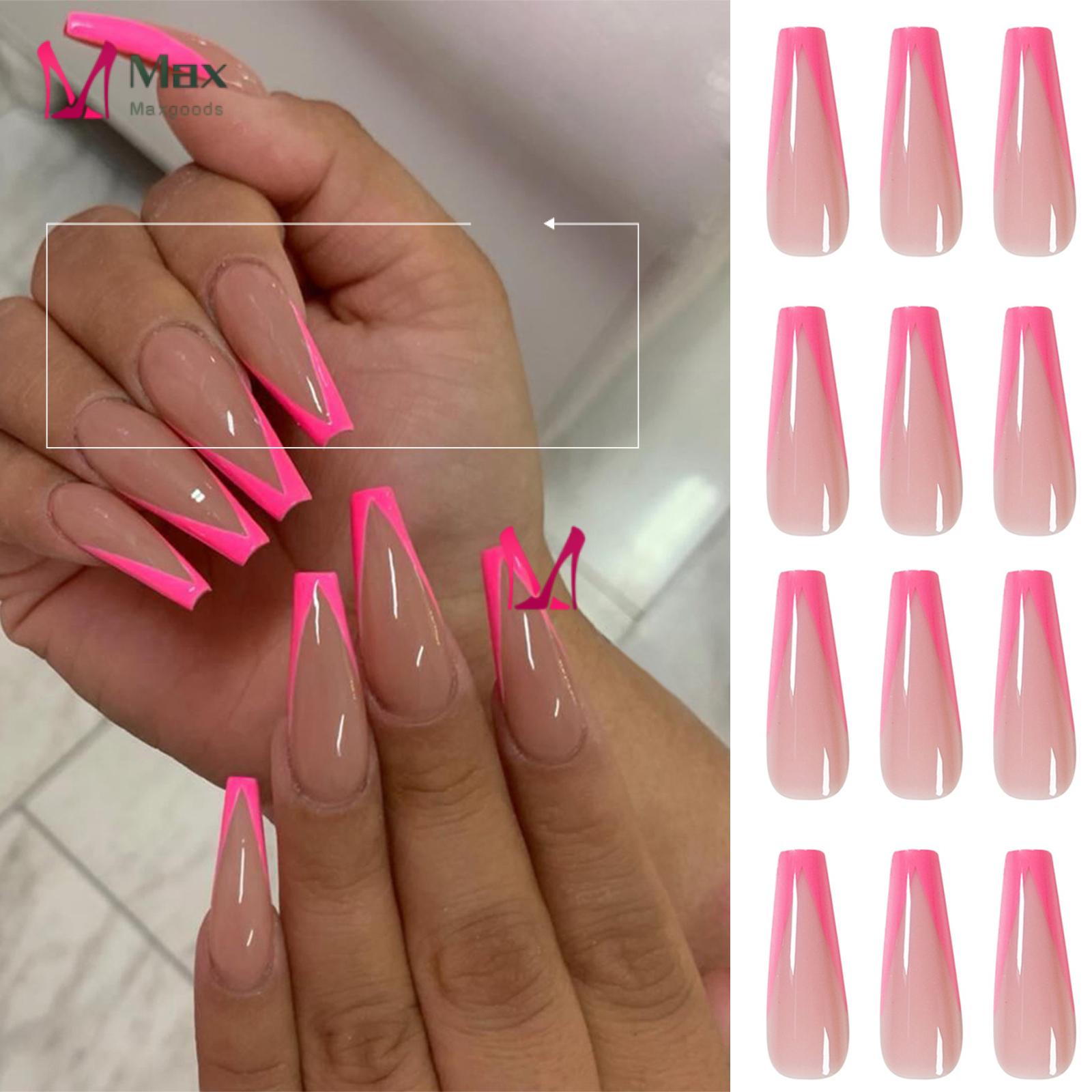 Ballerina V Shape Extra Long Coffin French Nail Art Tips Glossy Manicu Heypretti