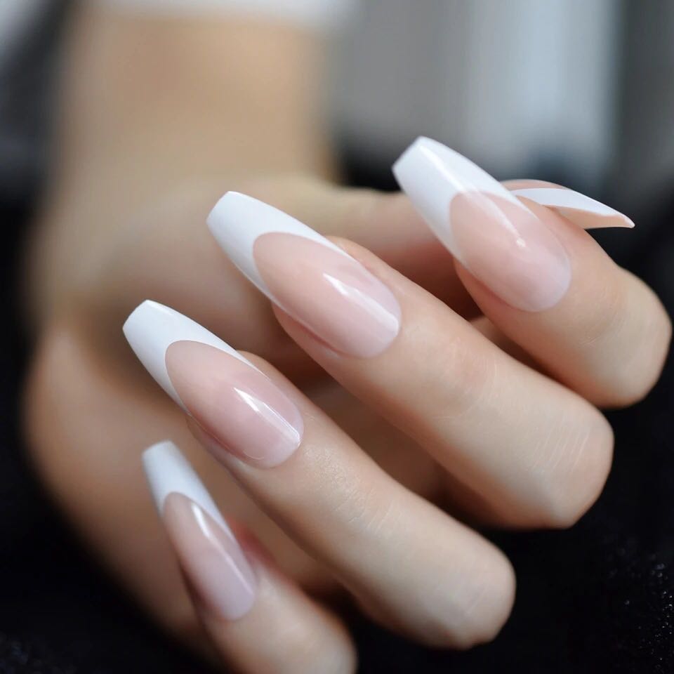 Amazon Com Echiq Everlasting French Nails White Fashion Designed Extra Long Ballerina Shaped Fake Nails Nude Salon Quality Tips Beauty