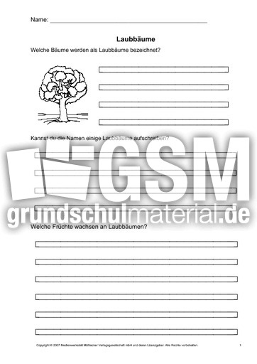Damit selbstständiges Arbeiten ab Klasse 1 möglich ist, enthält das Materialpaket einfach formulierte Aufgabenstellungen mit Symbolen, Lösungsseiten für die selbstständige Kontrolle, Vorlagen für Stationsschilder und Arbeitspläne Laubbäume und Nadelbäume Arbeitsblatt Laubbäume, ihre Blätter und Früchte Arbeitsblatt. Laubbäume 9 Laubbäume swKärtchen mit Bildern von Blättern und Früchten der Laubbäume zum Anmalen und Aufkleben Nicole KohlhauerGlombig, PDF 12/06;. Wissenswertes LÜK Wissenswertes über Bäume und Sträucher Babette Kohlross, PDF 5/04;.