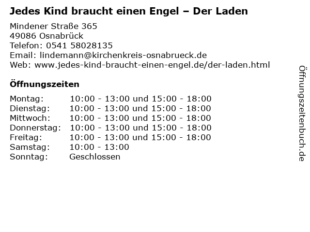 ᐅ Offnungszeiten Jedes Kind Braucht Einen Engel Der Laden Mindener Strasse 365 In Osnabruck