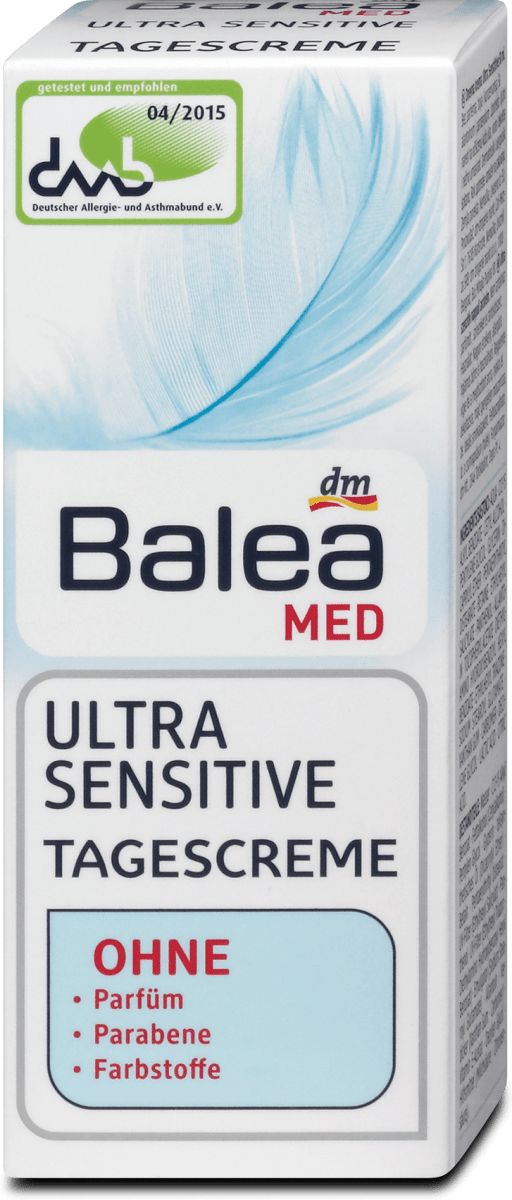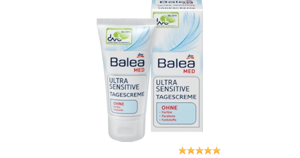 Balea Shampoo Ultra Sensitive, 250 ml German product $2250 Balea Professional Color Protection Shampoo 250 ml / 84 oz $1649 Balea shampoo volume, 300 ml (pack of 2) German product $2449 Balea pH 5,5 Skin Neutral Hand Cream 100 ml / 34 oz $990 Next Special offers and product promotions. Die Balea Med Ultra Sensitive Q10 AntiFaltenescreme verwöhnt die Haut Eine regelmäßige Anwendung trägt nachweisbar dazu bei, die Faltentiefe zu reduzieren* und die Hautelastizität zu verbessern** trägt so aktiv zur Regeneration der Haut bei Mit Q10 LSF 15 Schutz durch ausgewogene UVA/UVBKombination. Balea Med Ultra Sensitive, tested and recommended by the German Allergy and Asthma Association The Balea Med Ultra Sensitive Day Cream is optimally adjusted to stressed and irritated skin The gentle care formula – provides the skin with valuable moisture – The pH skinfriendly formula is gentle on the skin’s protective acid mantle.
