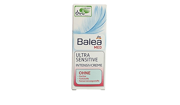 Balea Med Day Care Med Ultra Sensitive Intensive Cream Urea, 50 ml German product Price $1600 ($1600 / Count) & FREE Shipping Item is returnable in 30 days and restocking fee may apply You may be charged a restocking fee upto 50% of item's price for used or damaged returns and upto 100% for materially different item. Balea MED Ultra Sensitive denní pleťový krém s alantoinem a panthenolem je speciálně přizpůsoben namáhané a podrážděné pokožce Jemné pečující složení dodá pokožce potřebnou hydrataci Složení krému je bez parfemace, parabenů a barviv Testováno na alergie Kožní snášenlivost byla testována a. Die Kopfhaut wird gepflegt und geschont Das Frischegefühl ohne jeglichen Juckreiz hält endlich vor!.