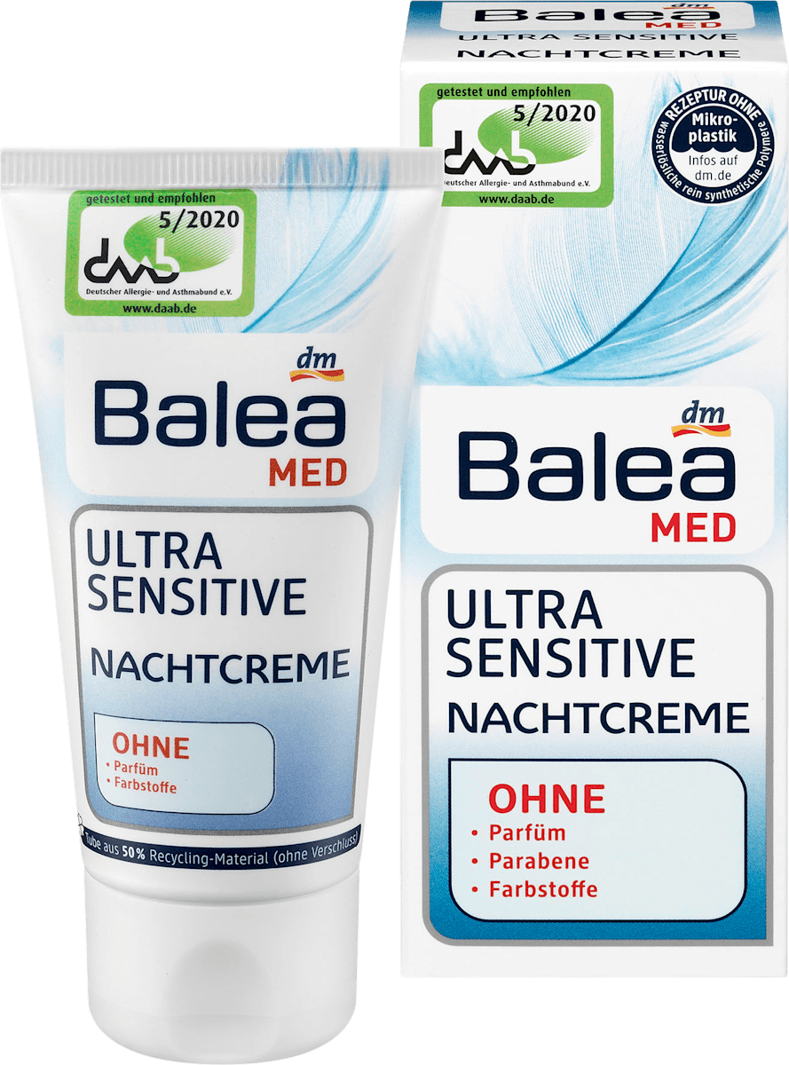 Balea Ultra Sensitive Waschgel is one of the cleansers with the best quality for value you could find in Europe It’s gentle, free of SLS, SLES, alcohol and fragrance It’s very cheap and it lasts a long time You can find it at your local Dm store It costs about 3 euros or 10 RON in Romania. Balea MED Ultra Sensitive noční krém obsahuje speciální komplex účinných látek pro citlivou a k alergiím náchylnou pokožku Bohatá pečující složka s vitamínem E, panthenolem a alantoinem uklidňuje napjatou, citlivou a podrážděnou pokožku, podporuje její regeneraci a zvyšuje hydrataci Ochranný. Balea Med Ultra Sensitive Cleansing Milk 0 ml (Balea Med Ultra Sensitive Reinigungsmilch) Balea Med Ultra Sensitive Cleansing Milk, tested and recommended by the German Allergy and Asthma Association Balea Med Ultra Sensitive Cleansing Milk cleanses the skin gently but thoroughly of dirt particles and makeup.