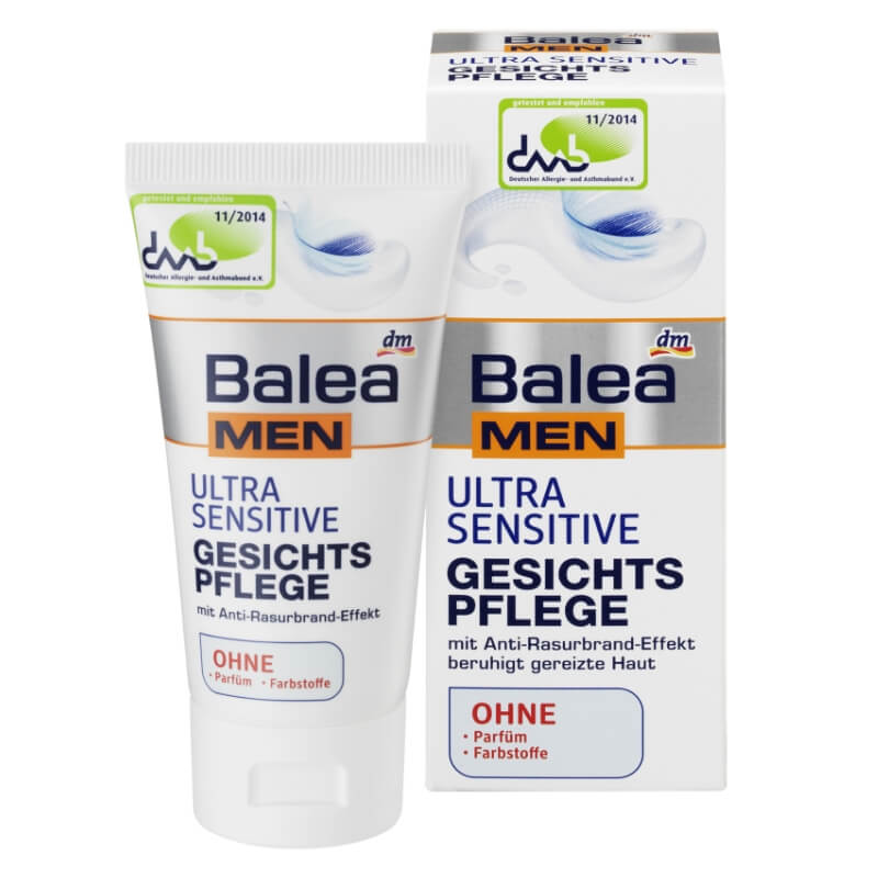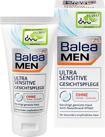 Balea MEN Ultra Sensitive Gesichtspflege ingredients explained Aqua, Isopropyl Palmitate, Glycerin, Octyldodecanol, Ammonium Acryloyldimethyltaurate/VP Copolymer, Dicaprylyl Ether, Ethylhexyl Stearate, Persea Gratissima Oil, Caprylyl Glycol, Sodium Lactate, Ribes Nigrum Seed Oil, Dipropylene Glycol, Glyceryl Caprylate, Helianthus Annuus Seed Oil Unsaponifiables, Lactic Acid, Tocopherol, Cardiospermum Halicacabum Flower/Leaf/Vine Extract, Helianthus Annuus Seed Oil, Rosmarinus Officinalis. Balea MEN Arctisztító hab, Ultra sensitive, 150 ml 150 ml (5 994 Ft / 1 l) (29) 9 Ft Bevásárlókocsi alverde MEN Borotvagél férfiaknak Sensitive Nature, érzékeny, 0 ml 0 ml (4 495 Ft / 1 l) (31) 9 Ft Bevásárlókocsi NIVEA MEN Borotvahab Sensitive. Mit einer Kombination aus Panthenol und Allantoin pflegt die Balea Med Ultra Sensitive Gesichtscreme empfindliche sowie gestresste Haut und versorgt sie intensiv mit Feuchtigkeit Zusätzlich wird der Säureschutzmantel der Haut geschützt und die natürliche Balance.