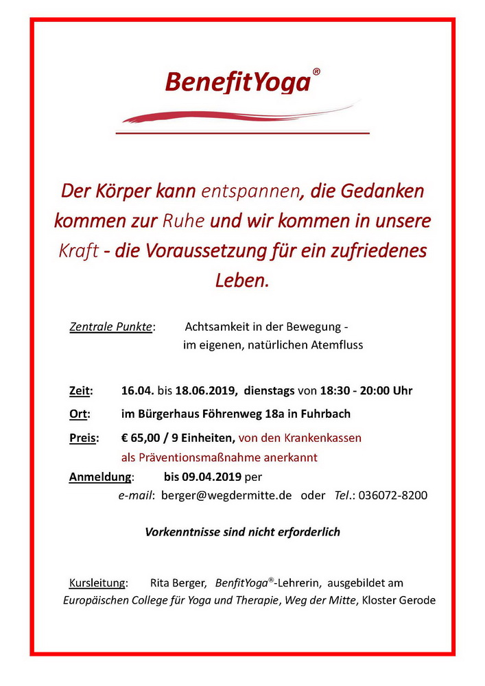 Benefit Yoga 19 Mein Fuhrbach
