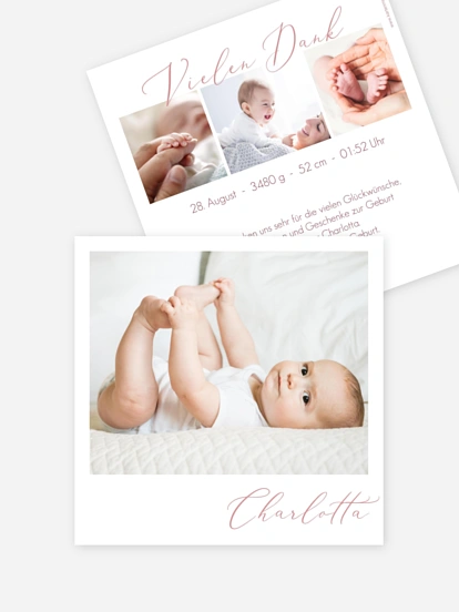 Individuelle Babykarten bei dm FotoParadies Viele Formate & Designs Effektlack und Veredelung Einfache Gestaltung Jetzt selbst gestalten & bestellen!. Jetzt noch gemütlich nach Ihrem persönlichen Geschmack gestalten, Foto und Danksagungstext einfügen, Papier und Umschlag wählen, dann können Sie Ihre Dankeskarten für den Druck freigeben Klingt einfach?. Bezaubernde Dankeskarten zur Geburt Ihrer Zwillinge finden Sie in unserem professionellen Kartenshop Da Sie nun alle Hände voll zu tun haben, kümmern wir uns um Ihre ganz individuellen Wünsche und übernehmen die Erstellung Ihrer Danksagungskarten.