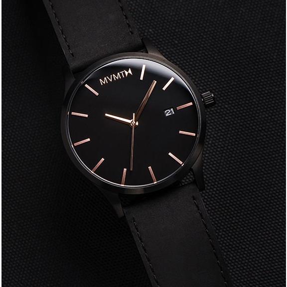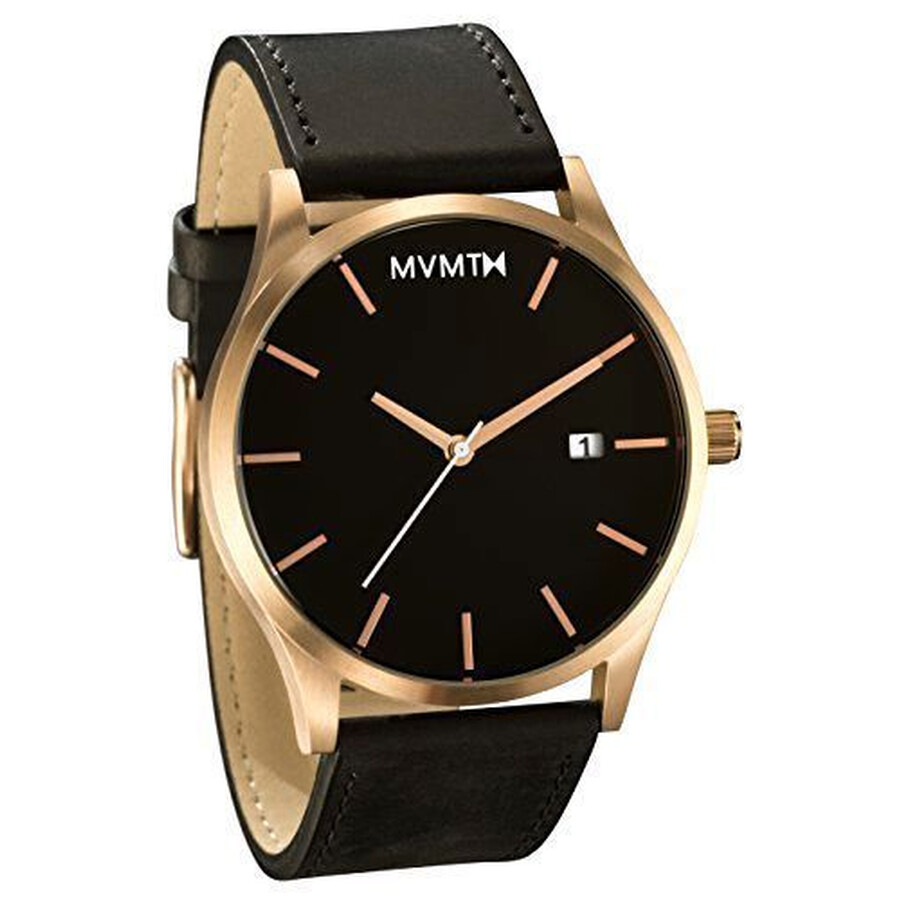 CASE SIZE 45 mm CASE THICKNESS 9 mm STRAP WIDTH 24 mm MOVEMENT Battery powered 3 hand Miyota Quartz with date GLASS Hardened mineral crystal WATER RESISTANCE 3 ATM CASE Brushed black stainless steel DIAL Black DIAL DETAILS Rose Gold hands & markers / Rose Gold second hand STRAP Black 100% genuine leather. Featuring classic, minimalist styling, this watch has a 45MM diameter, 9MM thick case;. Founded in 13, MVMT are on a mission to provide high quality, desirable watches at an affordable price Built for adventuring, MVMT watches inspire you to write your own story Designed in their Los Angeles HQ, there is a minimalist theme throughout the range, giving you a premium design at a fair price.