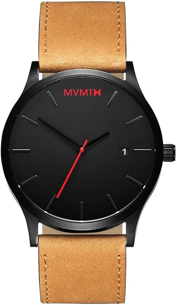 MVMT Classic Leather Strap Watch, 45mm Was $9500 Now $8075 15% off (1) Free Delivery. Movement is batterypowered 6hand chronograph with date Black strap crafted from 100% genuine leather;. This original quintessential minimalist piece features a signature color design – a rich tan genuine leather band and red accents with a round 45mm black dial encased in glass made of hardened mineral crystal.