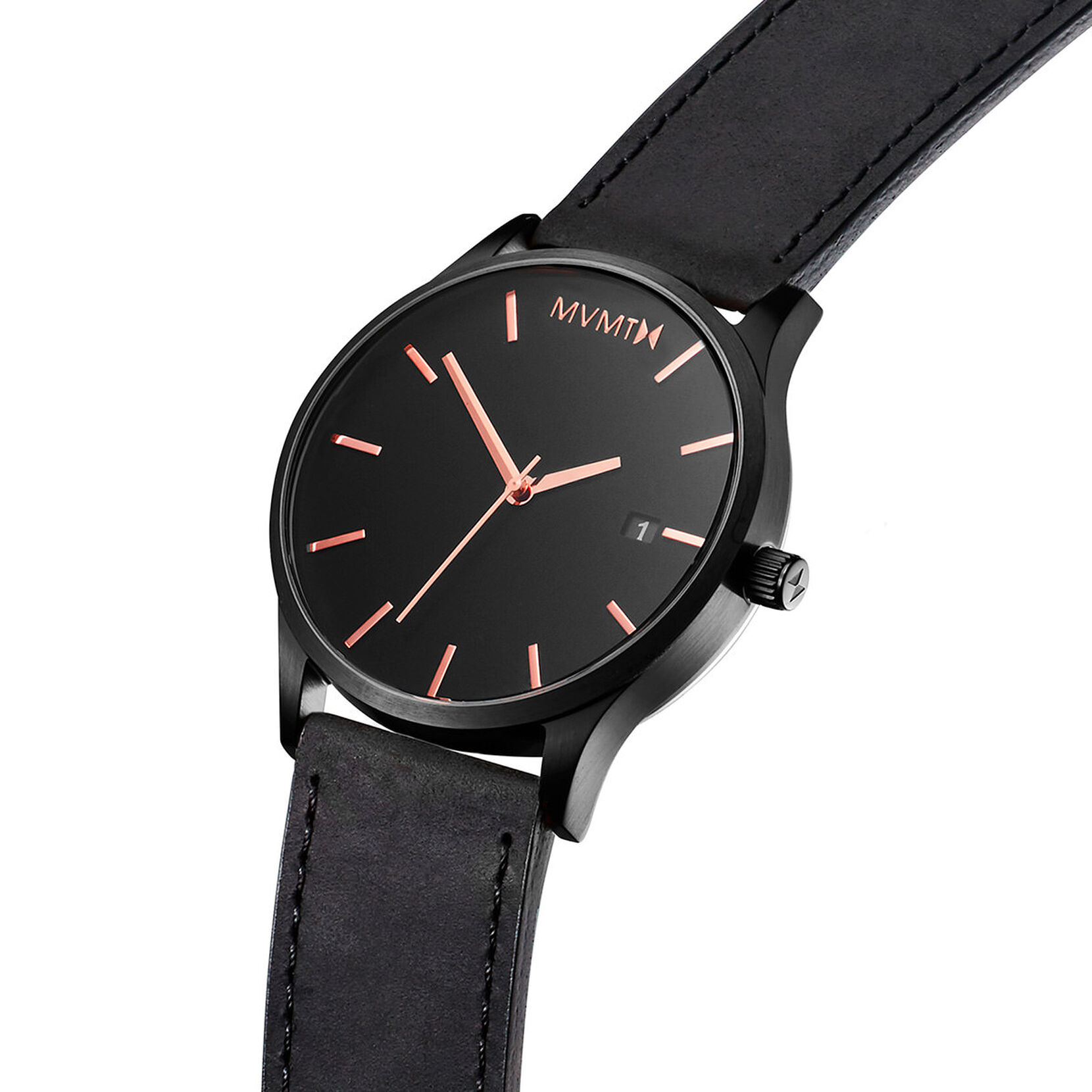 Mvmt Mvmt Classic Black And Rose Gold Date Dial Black Leather Strap Mens Watch Very Co Uk
