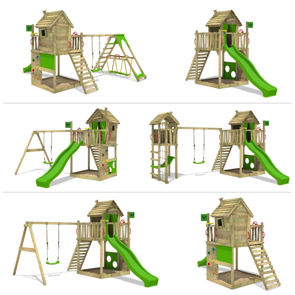 Fatmoose Kletterturm Rebelracer Spielturm Baumhaus Spielgerat Garten Mit Apfelgruner Rutsche Spielhaus Kinder De