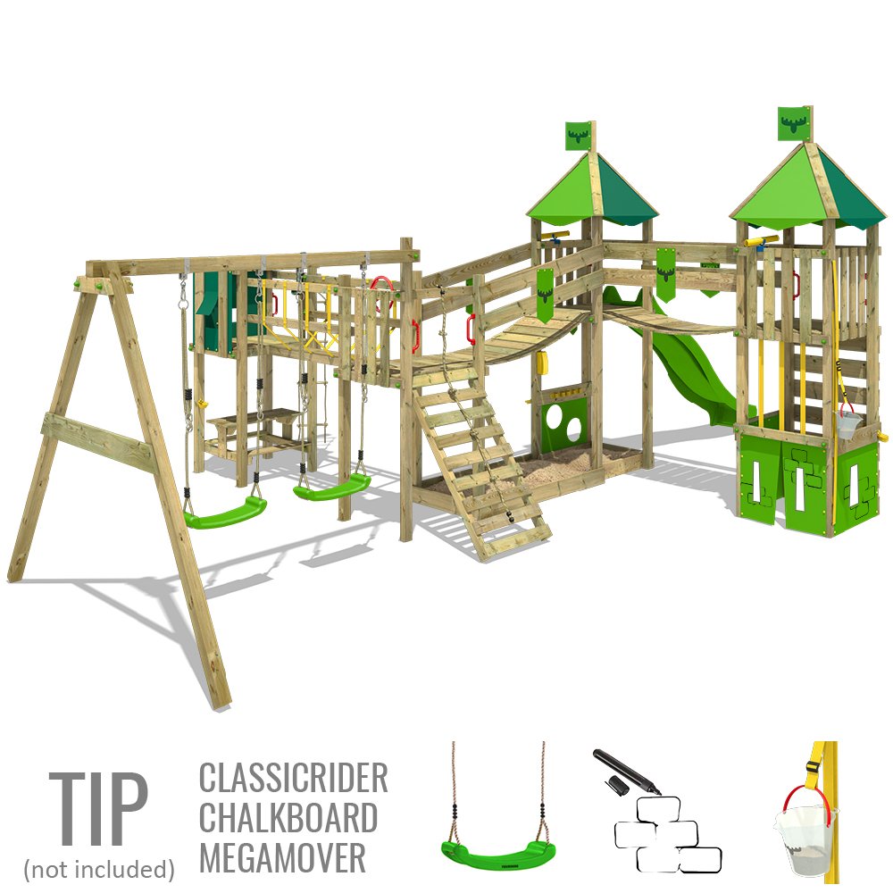 Spielturm Wackyworld Mega Xxl Klettergerust Baumhaus Aus Holz Mit Schaukel Anbau Grossem Sandkasten Und Apfelgruner Rutsche