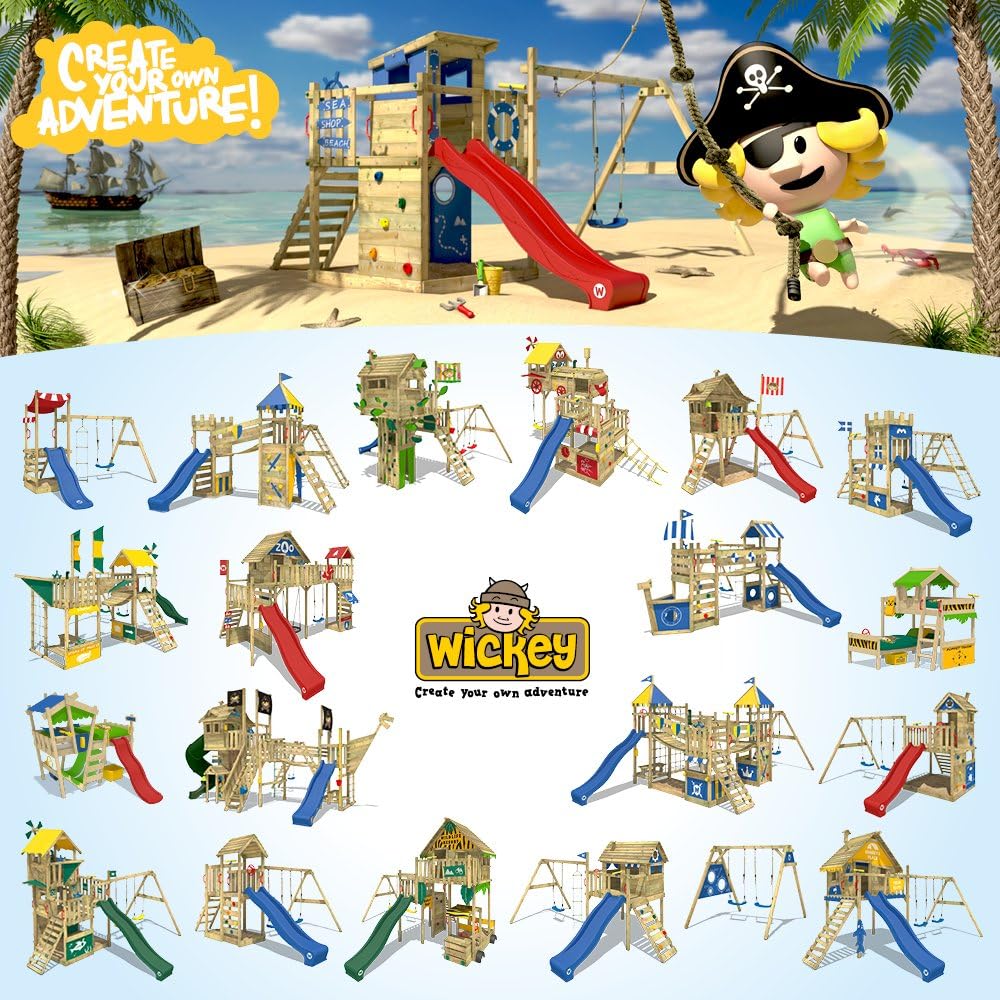 Wickey Spielturm Klettergerust Seaflyer Mit Schaukel Gruner Rutsche Baumhaus Mit Sandkasten Kletterleiter Spiel Zubehor Amazon De Baumarkt