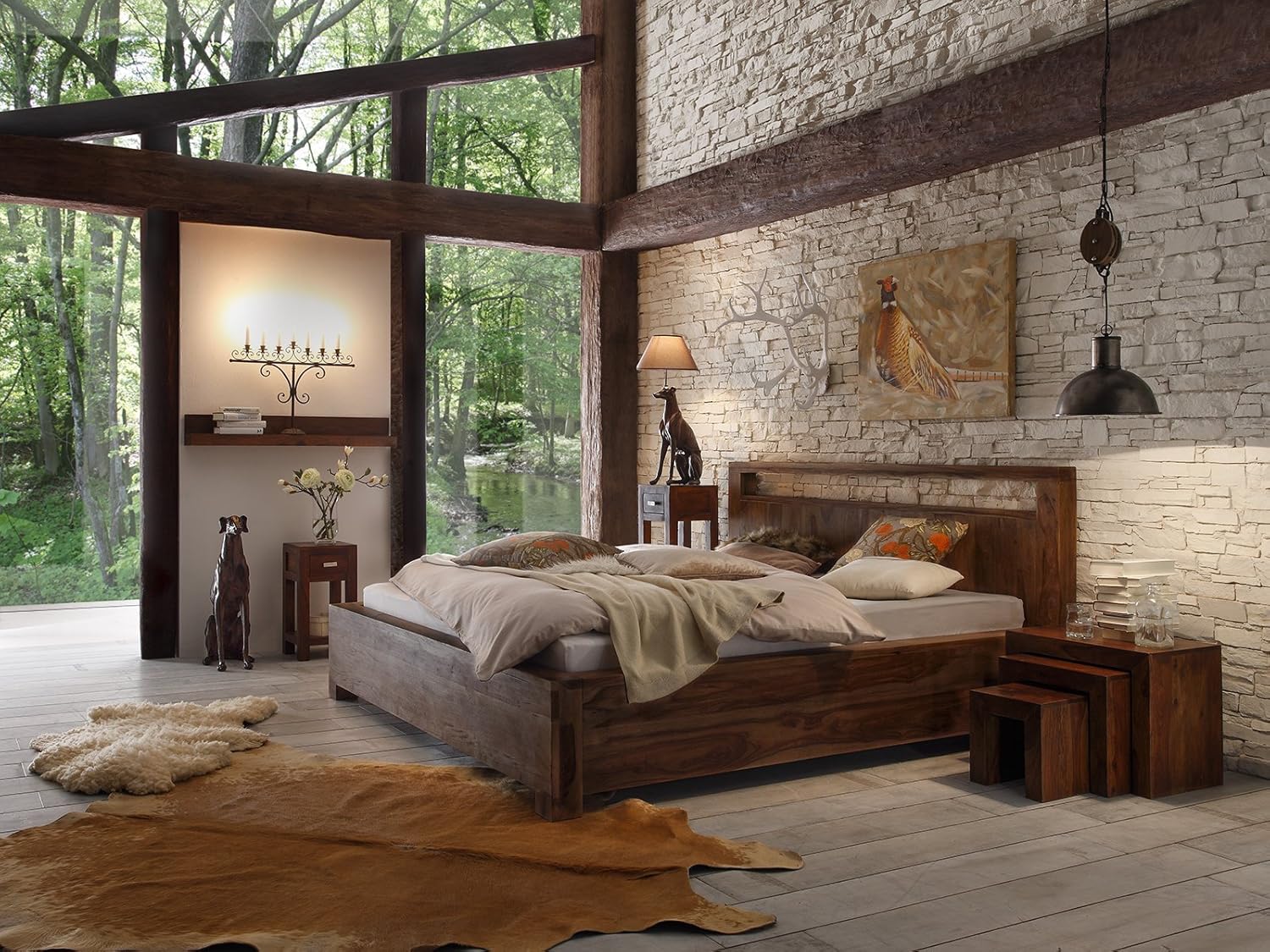 Nature Brown Bett 522 180x0 Palisander Sheesham Massiv Bett Nachtkonsole Palisander