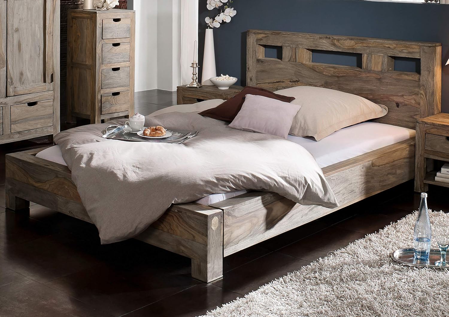 Massivmoebel24 De Palisander Massivholz Bett 180x0 Sheesham Holz Mobel Nature Grey 2 Amazon De Kuche Haushalt