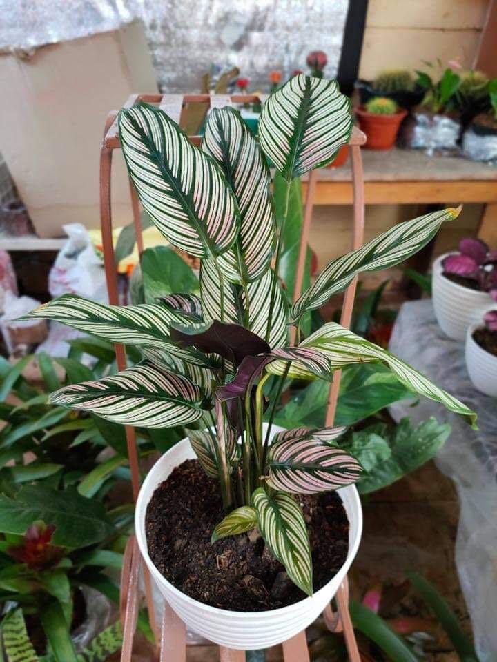 With ornate leaves adorned in varying colors and patterns, the Calathea looks like a work of art. Type 4 Plant Originating from the tropics of Brazil and Columbia, this Calathea has beautiful white and pink pinstripes leaves, making this a perfect statement plant Similar to a prayer plant, the Calathea’s leaves will unfurl with the sunrise and then close again at night Best kept in a bright, humid spot away from direct sunlight Water frequently to keep the soil moist but not soggy If. Calathea ornata ‘Sanderiana’ is a cultivar or variety bred from Calathea ornata Like its mother plant, ‘Sanderiana’ also goes by the common name Pin Stripe plant due to the striping of the foliage The basic difference between the two is the leaves on Sanderiana are not as long and are more elliptical than spearlike.