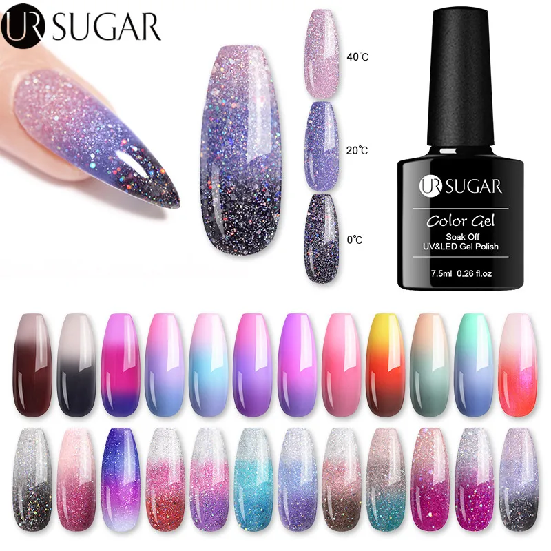 Ur Zucker Regenbogen Thermische Farbwechsel Gel Nagellack Glitter Temperatur Weg Tranken Uv Gel Lack 7 5 Ml Nagel Kunst Nagelgel Aliexpress