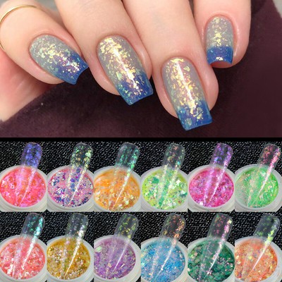 Aurora Neon 0 5 G Nail Effekt Pigment Puder Glitzer Einhorn Regenbogen Meerjungfrau Perlen Nagel Farbwechsel Design Amazon De Beauty