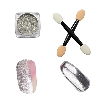 Selftek Nail Art Pure Pulver Magie Spiegel Nagel Glitzer Regenbogen Pigment Pulver Mit Schwamm Stick Silber Amazon De Beauty