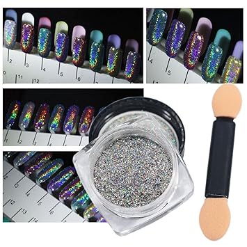 Holographic Nail Powder Foxtsport Holographisches Nagelpulver Nagel Laser Chrom Pigment Glitter Einhorn Holo Regenbogen Spiegel Pulver Staub Manikure Nagel Kunst Dekoration 0 5 G Box Amazon De Beauty