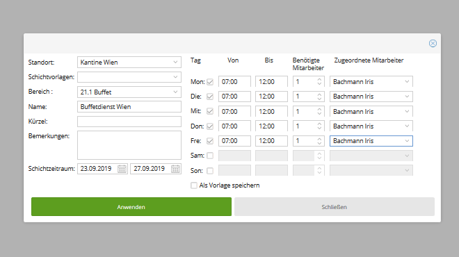 Dienstplan Fur Die Gastronomie Kostenlos Und Online Mit Der Software