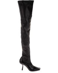 Black Kid Leather And Stretched Bonded Fabric Over The Knee Boots Mire 85 Autumn Winter Jimmy Choo