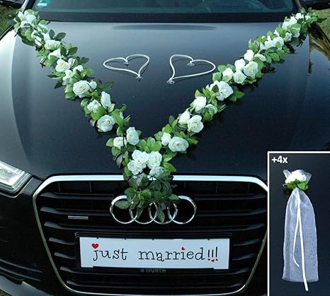 Dekoset Fur Das Hochzeitsauto Kunstliche Blumen Deko Fur Schnelle Und Einfache Montage Auf Dem Brautauto Gr Autoschmuck Hochzeit Hochzeit Dekoration Hochzeit