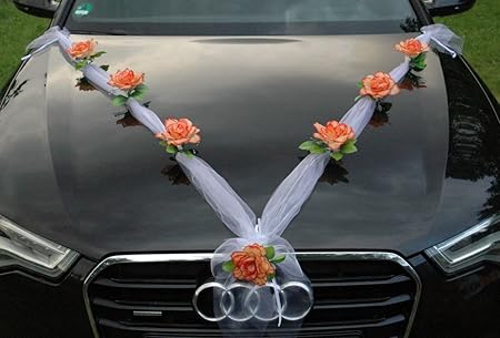 Autoschmuck Organza M Auto Schmuck Braut Paar Rose Deko Dekoration Hochzeit Car Auto Wedding Deko Orange Weiss Amazon De Auto