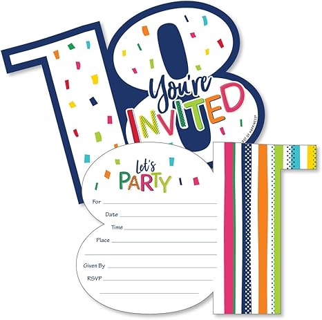 Einladungskarten Zum 18 Geburtstag Frohlich Happy Birthday Geformte Einladungen Zum Einfullen Bunte Geburtstagsparty Mit Umschlagen 12 Stuck Amazon De Kuche Haushalt