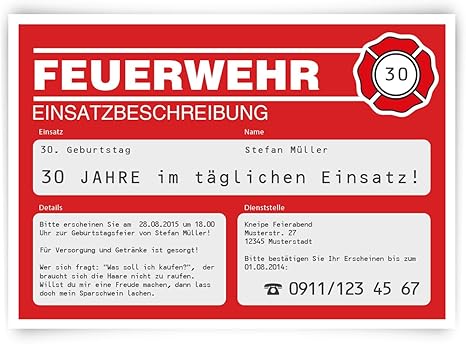 Einladungskarten Zum Geburtstag 50 Stuck Als Feuerwehr Einsatz Rot Feuer Feuerwache Amazon De Kuche Haushalt