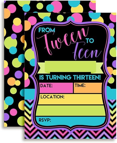 Amandacreation Einladungskarten Zum 13 Geburtstag Fur Madchen 13 X 18 Cm Weisse Umschlage Amazon De Kuche Haushalt