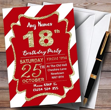 Einladungskarten Zum 18 Geburtstag Rot Weiss Diagonale Streifen Goldfarben 70 Invites Envelopes Amazon De Kuche Haushalt