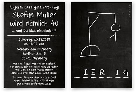 30 X Einladungskarten Runder Geburtstag 40 Jahre Geburtstagseinladungen Galgenmannchen Amazon De Kuche Haushalt
