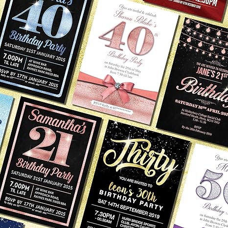 Einladungskarten Zum 18 21 30 40 50 60 Geburtstag Jedes Alter Personalisierbar Schwarz Amazon De Kuche Haushalt