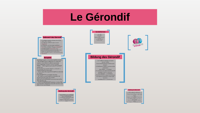 Die Bildung des Gérondif Alle Übungen mit Gérondif Die Bildung des Gérondif 2;. Das Gerundium (le gérondif) ist eine Partizipalkonstruktion des Französischen Zunächst soll die Bildung und anschließend der Gebrauch erläutert werden Wir behandeln das Gérondif in diesem Kapitel, da es im Allgemeinen der Verkürzung von Nebensätzen dient. Participe présent einfach erklärt Viele VerbenThemen Üben für Participe présent mit Videos, interaktiven Übungen & Lösungen.