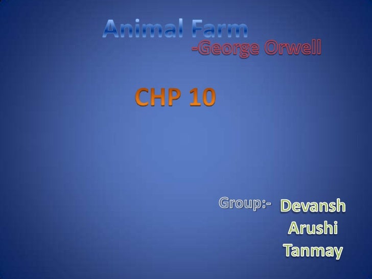 Animal Farm is an allegorical, dystopian, and satirical novella written by George Orwell and published in 1945 The literal story features a group of animals on a farm that rise up in rebellion against their human master, Mr Jones, only to find themselves continuing to have issues with power struggles and abuses of power. Answer Name that chapter?. Animal Farm Chapter Summaries Short Chapter 10 Years later few of the animals are alive who remember the days before the rebellion The windmill is finished but is used for milling corn to be sold at a profit rather than for electricity to make the animals’ lives easier The commandments are scrubbed off the barn wall and replaced with just.