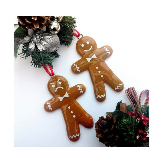 Handgemachte Verschmolzen Glas Lebkuchen Mann Hangen Deko Etsy