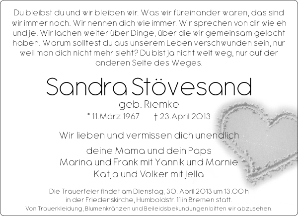 Sandra Stovesand Gedenken Nordsee Zeitung