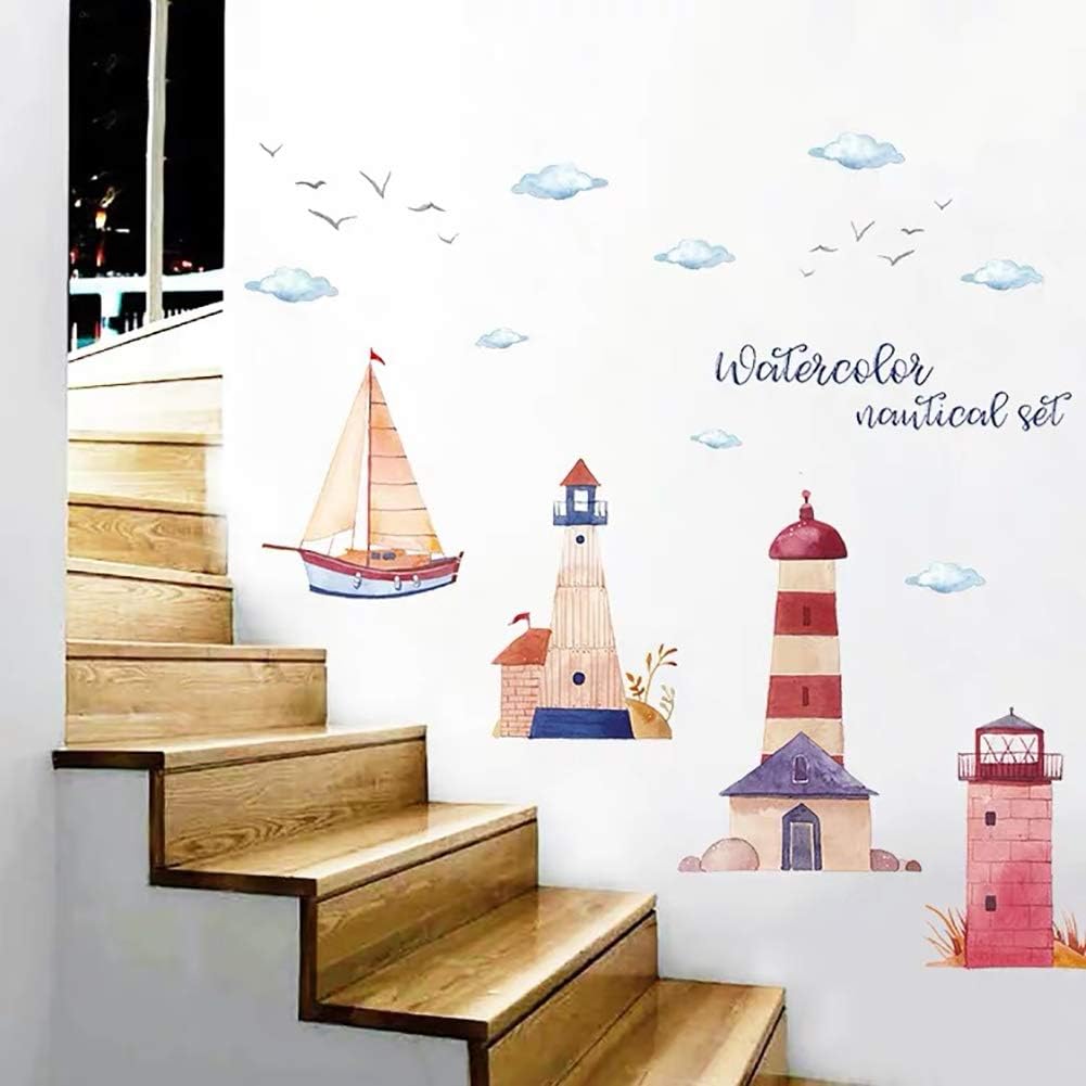 Wandsticker4u Wandtattoo Leuchtturm Wandbild 163xcm Deko Kinderzimmer Kinder Badezimmer Bad Junge Wandsticker Segelboot Mowen Ozean Meer See Schiff Maritim Fliesenaufkleber Wandaufkleber Deko Furs Kinderzimmer Wanddeko
