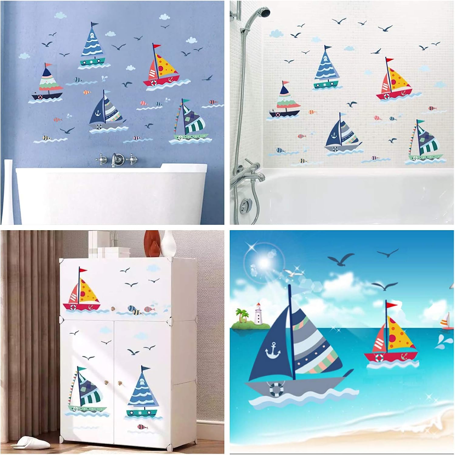 Wandsticker4u Wandtattoo Kinder Segelboote I Wandbilder 175x70 Cm I Fliesenaufkleber Kinderzimmer Junge Segel Boot Schiff Ozean Meer Maritim Fische Aufkleber I Wand Deko Fur Badezimmer Bad Amazon De Baumarkt