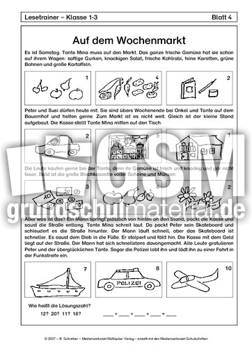 Auf Dem Wochenmarkt 1 Aufgabenblatter Lesetrainer Stufe 2 Der Lesetrainer Lesen Deutsch Klasse 2 Grundschulmaterial De
