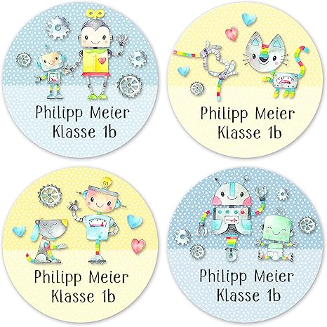 24 Individuelle Namensaufkleber Zum Markieren Von Heften Und Schul Buchern Roboter Personalisierte Sticker Fur Kinder Geschenk Zur Einschulung Perfekt Fur Die Schule Schulbuchetiketten Amazon De Kuche Haushalt