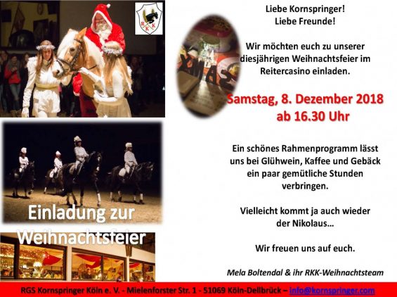 Kornspringer Weihnachtsfeier Am Samstag 8 Dezember 18 Reitergemeinschaft Kornspringer Koln E V