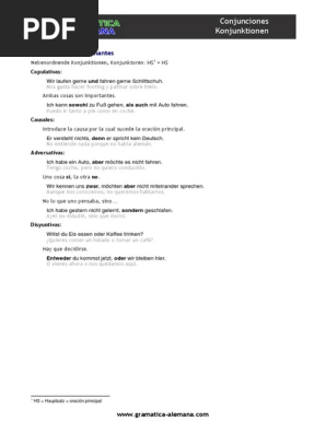 13 15 Uso de las piezas del complemento de extensión Instale los conectores de pared (Q) en los cinco puntos de unión PASO OPCIONAL Si se deseara, podrán usarse los orificios de anclaje para anclar el piso del cobertizo a una cimentación 14 Uso de las piezas del complemento de extensión Alinee las solapas entre los paneles laterales izquierdos. KONJUNKTIONEN BEISPIEL que (der, die das, dass, welche, welcher, als, denn) Tiene un pájaro que habla Er hat einen Vogel, der spricht y (und) Quiero la camisa azul y los zapatos negros Ich möchte das blaue Shirt und die schwarzen Schuhe o. INTRODUCCIÓN 1 JUSTIFICACIÓN POR QUÉ UN DICCIONARIO DE CONECTORES Y OPERADORES El Diccionario de conectores y operadores del español es un proyecto que nació como fruto de mis estudios sobre conectores y partículas modales, los estudios de E Alcaide sobre las interjecciones, de cuya tesis fui directora, y la actividad del grupo.