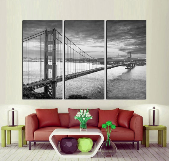 Sf Golden Gate Bridge 3 Panel Split Leinwand Triptychon B W Etsy