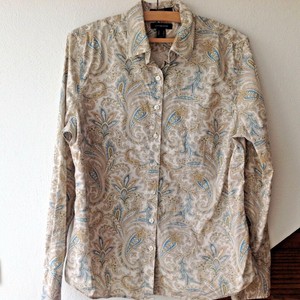 Lands End Bugelfreie Damenbluse Paisley Jacquard Lange Armel Grosse 40 M Ebay