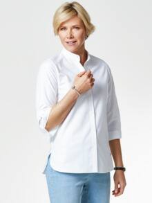 Damen Bugelfreie 3 4 Arm Popeline Hemdbluse Aus 100 Baumwolle Weiss 60 0001 Seidensticker